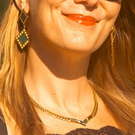 Inspired by the magnetic energy of the stars. Bold gold and dark green to make you feel electric and alive.