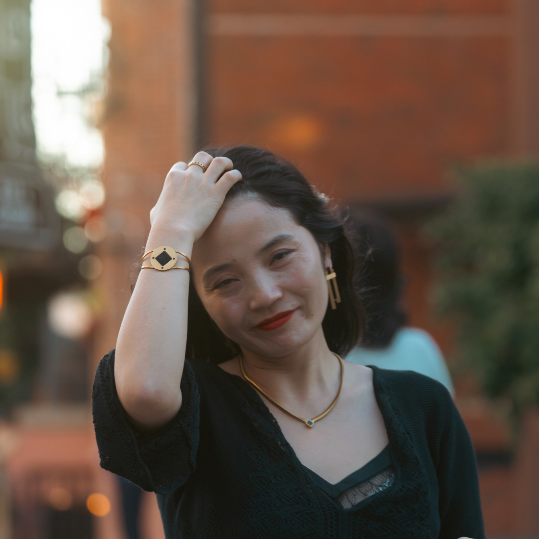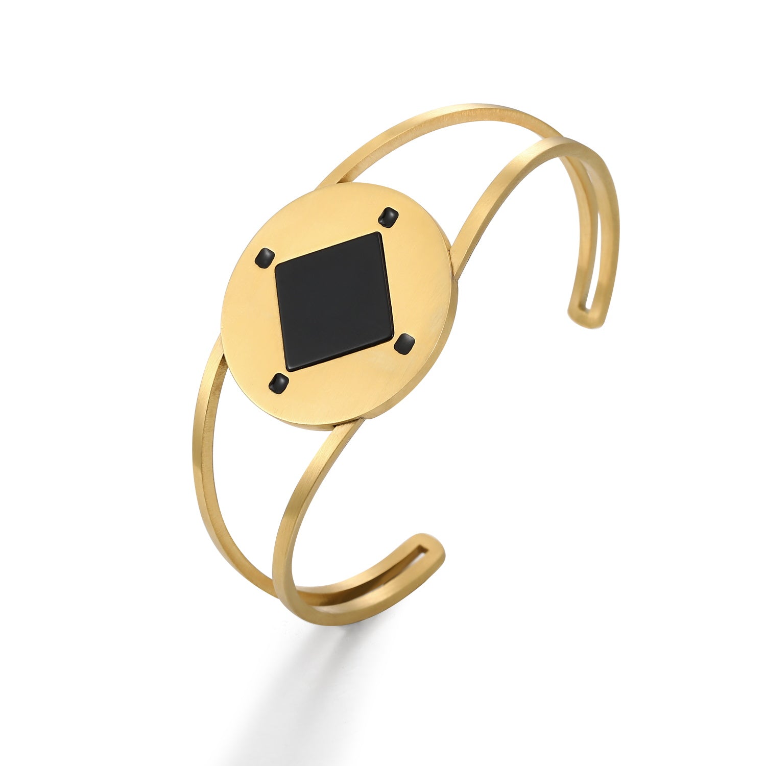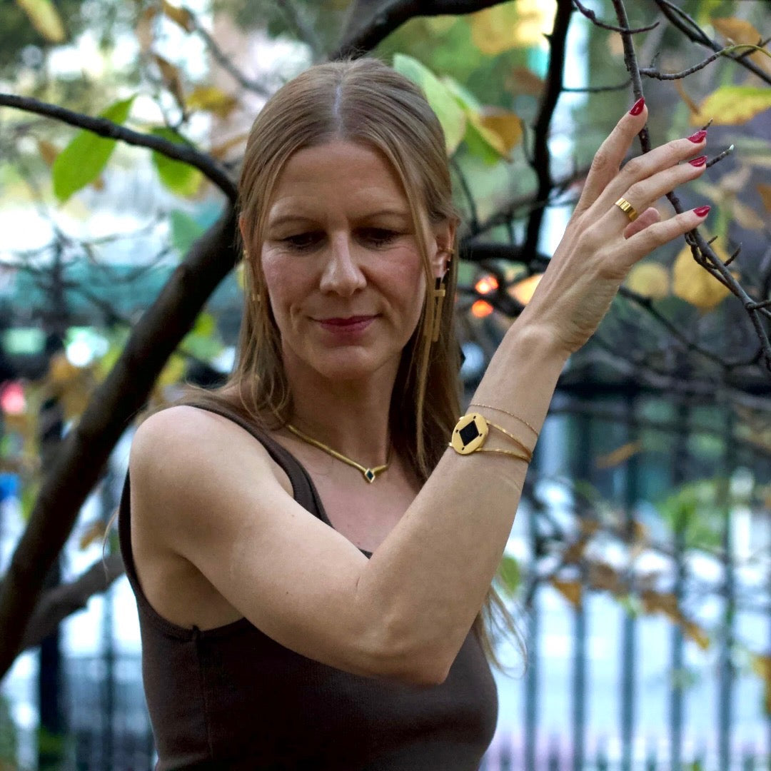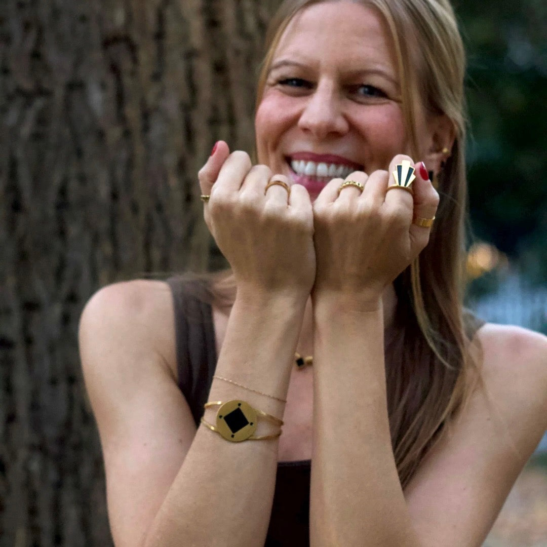 - Material: Recycled Stainless Steel with 18K gold PVD coating (hypoallergenic, long-lasting - won't turn your skin green!) with black enamel details