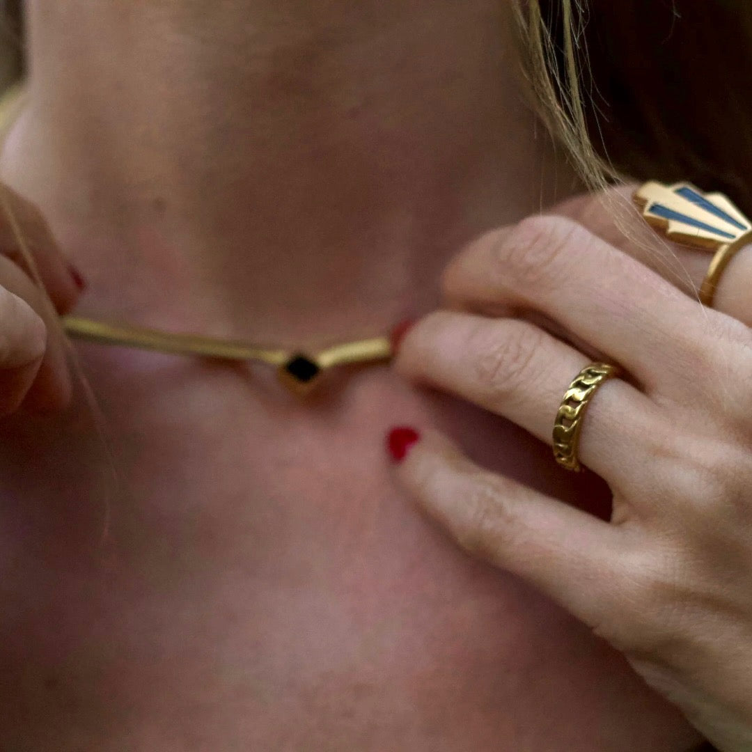 - Material: Recycled Stainless Steel with 18K gold PVD coating (hypoallergenic, long-lasting - won't turn your skin green!)