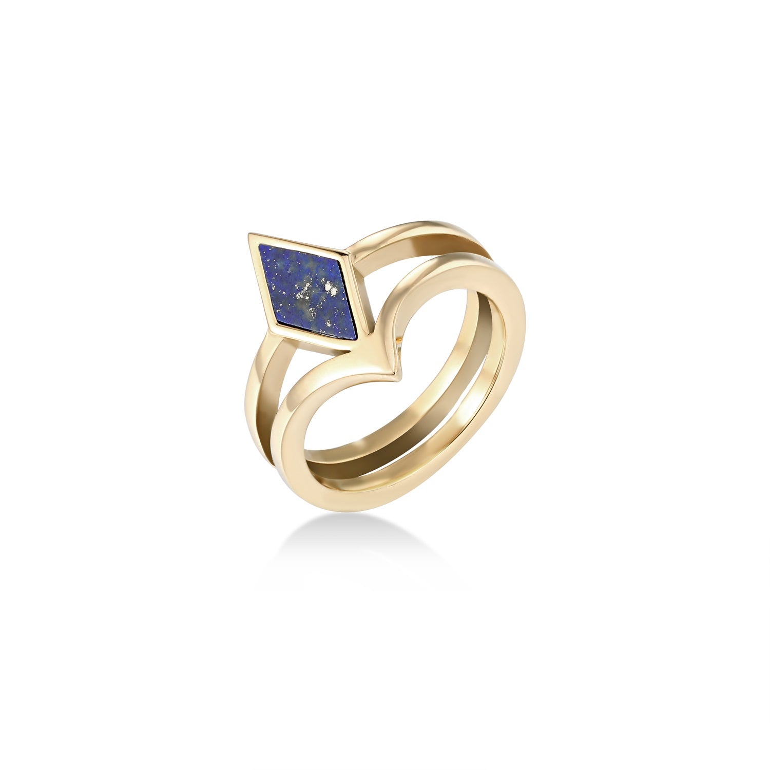 Carry the beauty of the cosmos with you wherever you go. This stunning gold ring features a mesmerizing lapis lazuli stone, with an intense blue color and a sprinkling of gold. Let it remind you of the wonders of the universe.