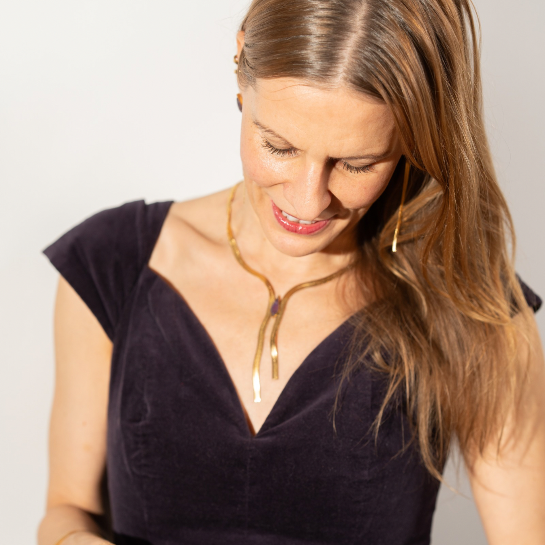 This necklace was love at first sight for me. Stunning and elevates every thing I wear it with. It sits beautifully on my neck and is low maintenance to wear (doesn’t get twisted or turned ). The owner is lovely as well! Beautiful and timeless purchase!