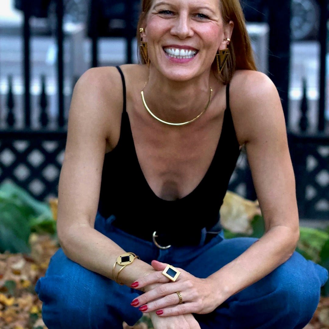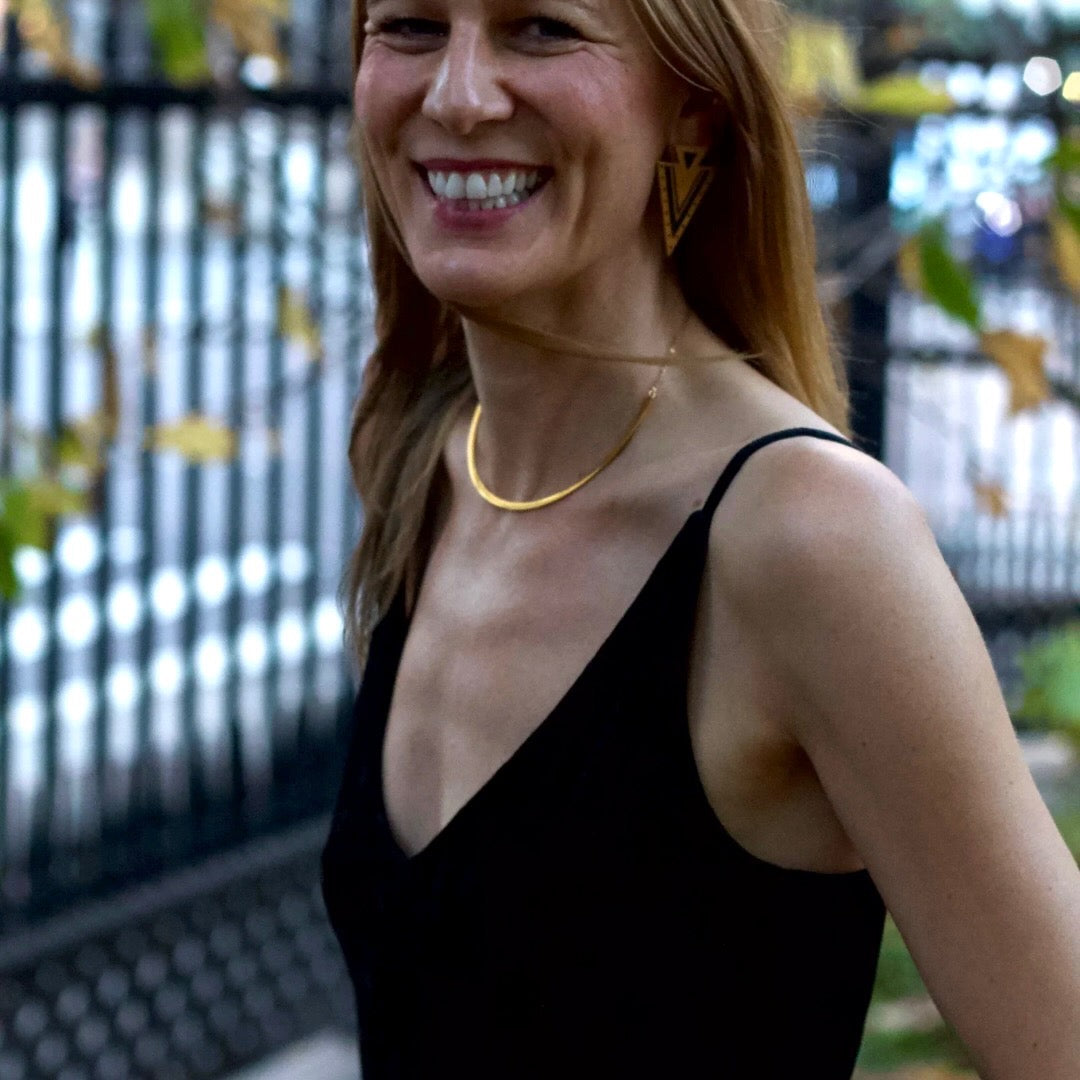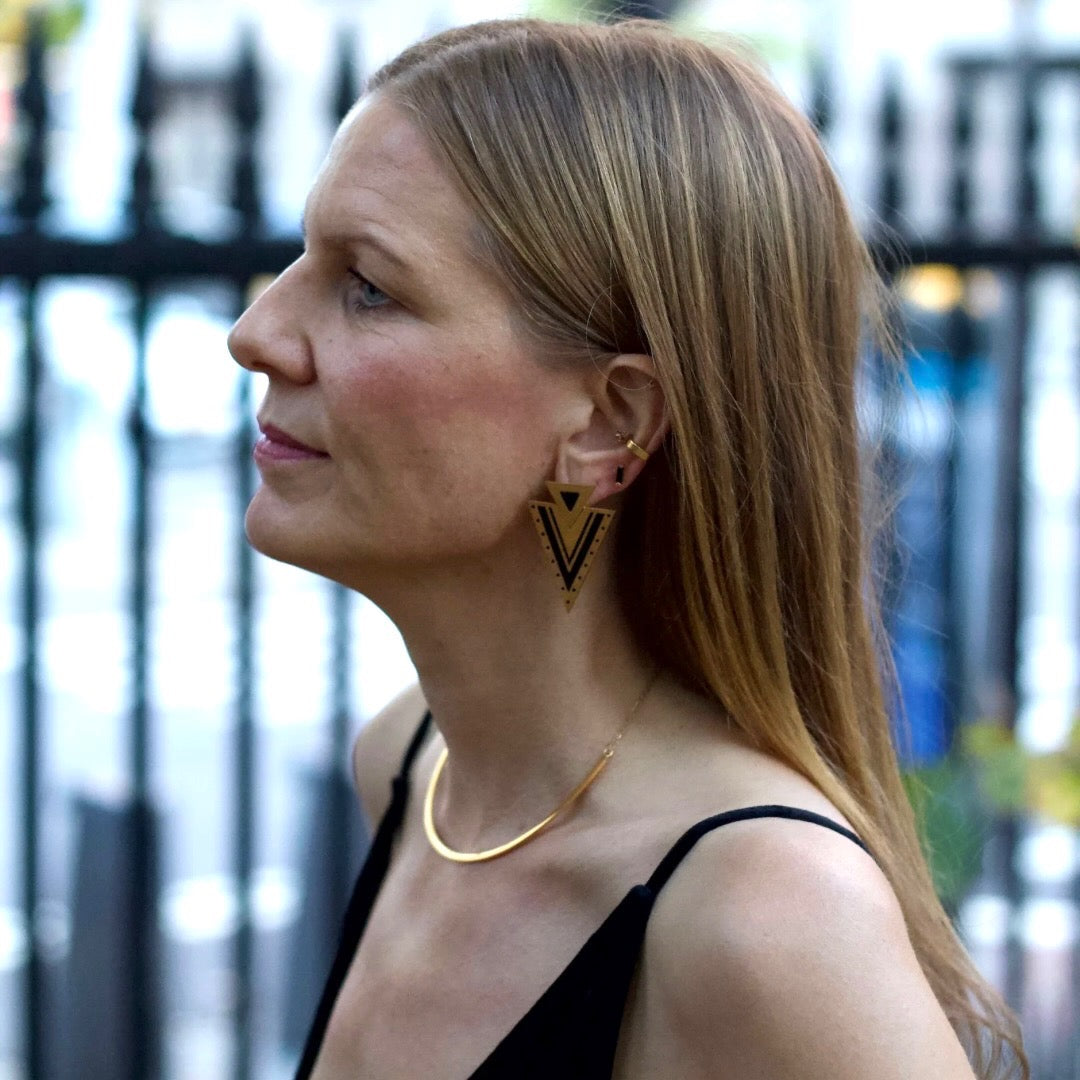 - Material: Recycled Stainless Steel with 18K gold PVD coating (hypoallergenic, long-lasting - won't turn your skin green!)