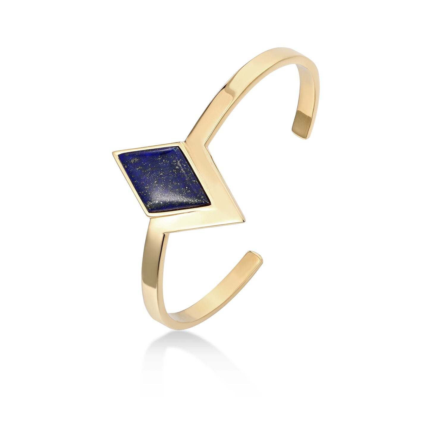 Experience the stunning combination of vibrant gold and deep blue with this bold cuff adorned with lapis lazuli stone. The golden flakes, reminiscent of stardust, will add a touch of enchantment to any outfit. Feel empowered and radiant with this unique and beautiful bracelet.