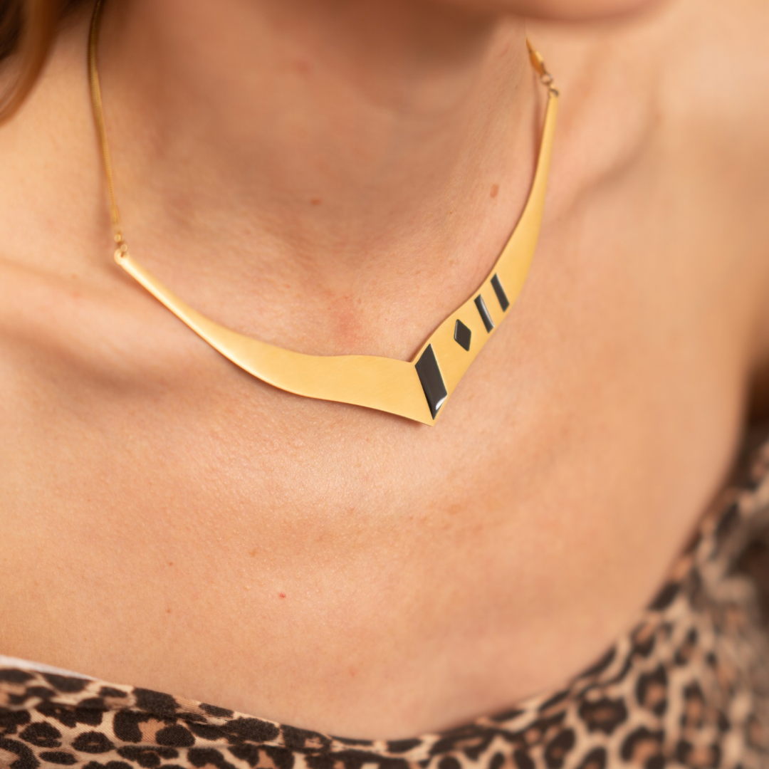 - Material: Recycled Stainless Steel with 18K gold PVD coating (hypoallergenic, long-lasting - won't turn your skin green!) with black enamel details