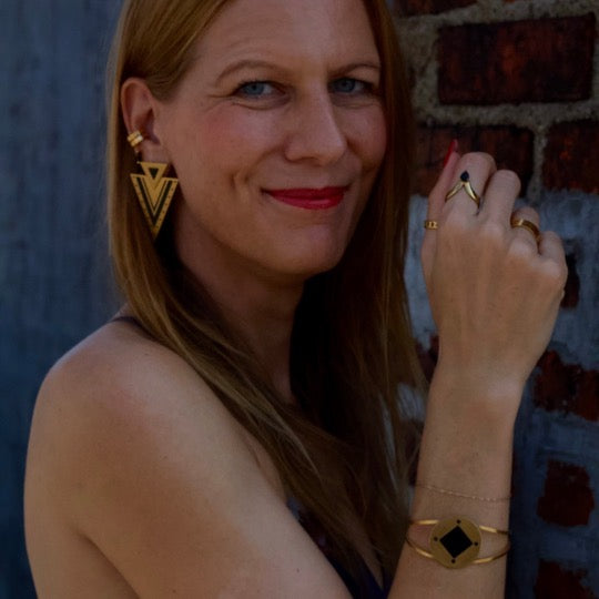 - Material: Recycled Stainless Steel with 18K gold PVD coating (hypoallergenic, long-lasting - won't turn your skin green!)